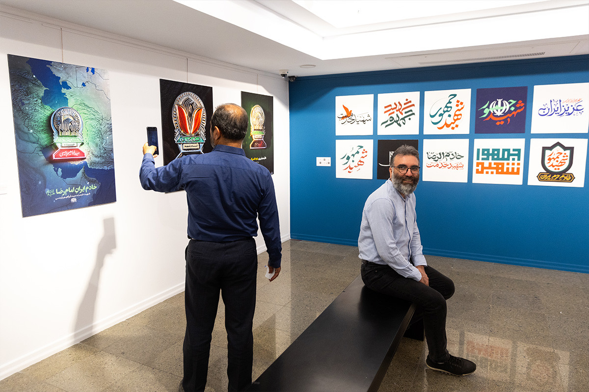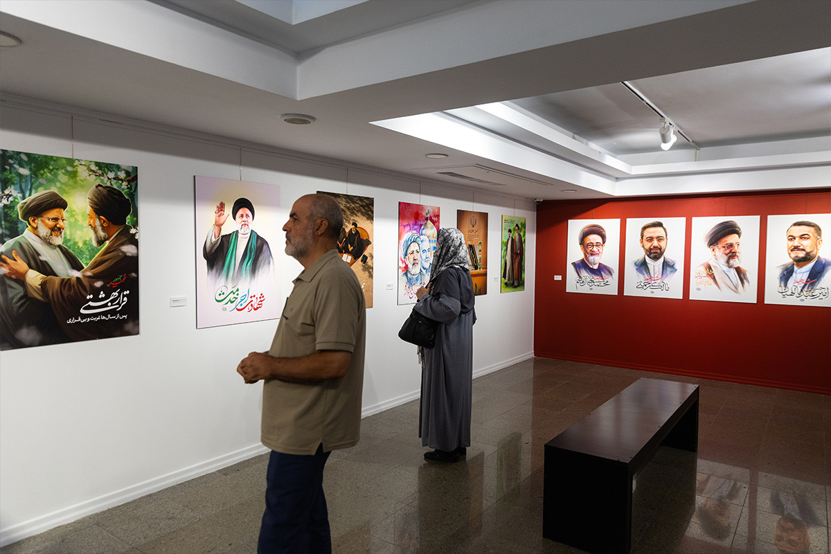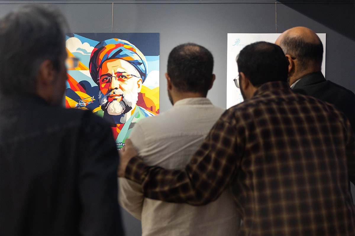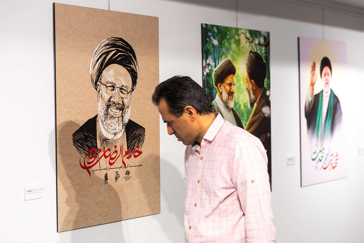نمایشگاه پوستر و تایپوگرافی «خادمان ملت» به مناسبت اولین سالگرد شهادت آیت الله رئیسی و همراهان ایشان در گالری ابوالفضل عالی حوزه هنری تهران بر پا شد. عکاس: فواد اشتری