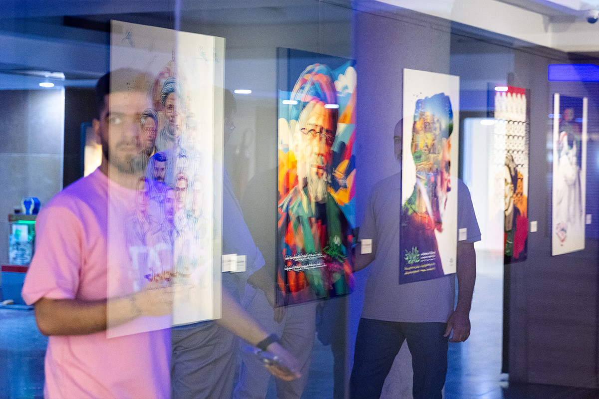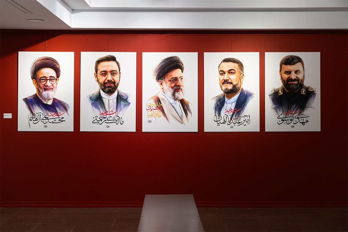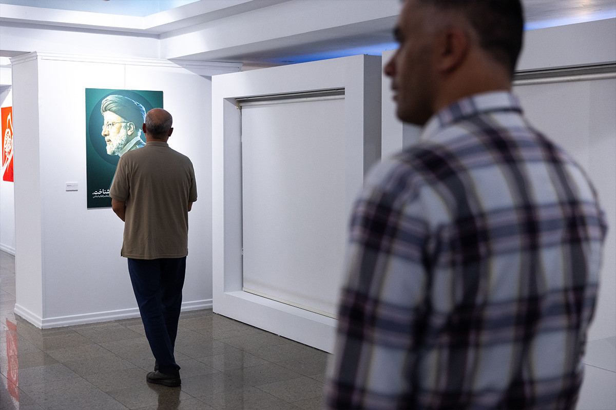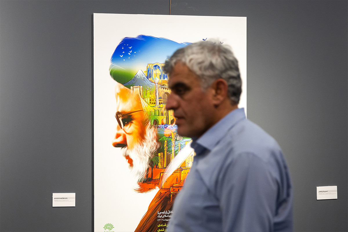 نمایشگاه پوستر و تایپوگرافی «خادمان ملت» به مناسبت اولین سالگرد شهادت آیت الله رئیسی و همراهان ایشان در گالری ابوالفضل عالی حوزه هنری تهران بر پا شد. عکاس: فواد اشتری