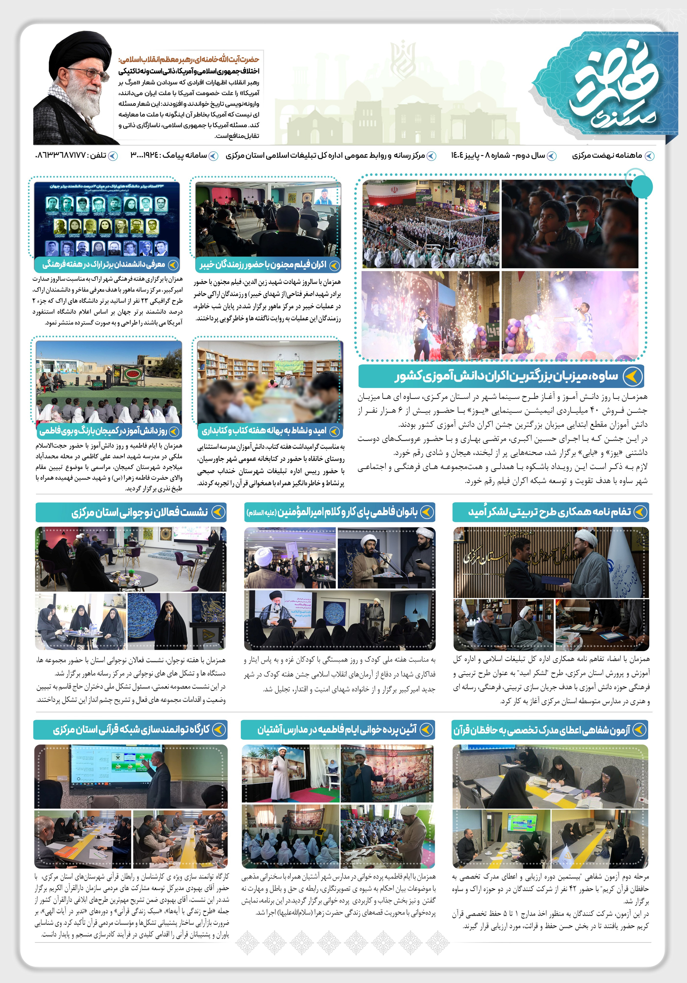 نوزدهمین ماهنامه نهضت مرکزی به همت روابط عمومی اداره کل تبلیغات اسلامی استان مرکزی منتشر شد.