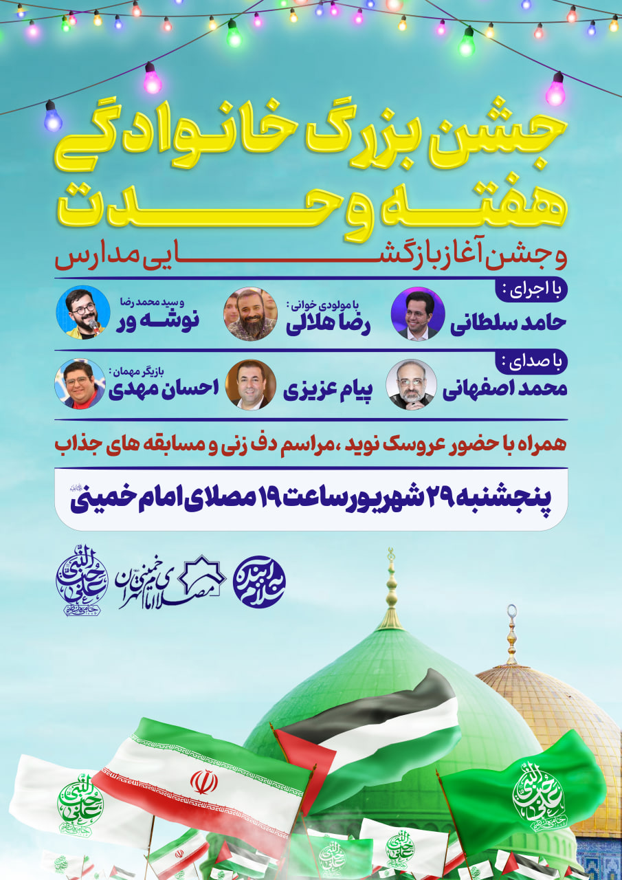 جشن بزرگ خانوادگی محفلیها شامگاه پنجشنبه ۲۹ شهریوردر مصلای امام خمینی(ره) تهران برگزار میشود.