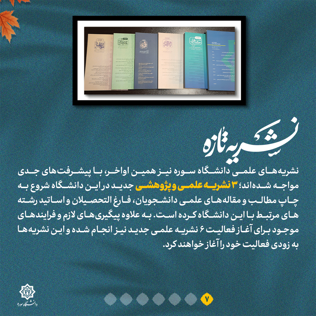 به گزارش روابط عمومی سازمان تبلیغات اسلامی، دانشگاه سوره یکی از معدود دانشگاههای ایران است که به طور خاص روی تربیت هنرمند و ارتقای سطح دانش جوانان مستعد در امر هنر تمرکز دارد؛ یکی از مراکز آموزش عالی که از ابتدا بنا بود مرکزی برای تربیت هنرمند متعهد و با دانش شود و طی گذشت سالها به سیاق و روال سایر مراکز آموزش عالی در هنر تبدیل شد؛ چیزی که تحول در این دانشگاه را امری اجتناب ناپذیر می کرد. مهمترین راهبرد دانشگاه سوره در سالهای اخیر اجرای سند تحول دانشگاه است. جزئیات این تحول چیست؟ این نشریه را دنبال کنید.
