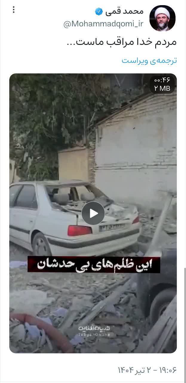 ۲ تیر | حجتالاسلام قمی در صفحه شخصی خود نوشت؛