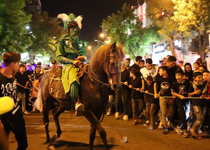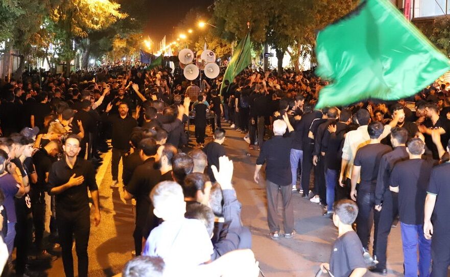 پیران با پرچمهایی در دست، همچون نگهبانان خاطرات عاشورا پیشاپیش حرکت میکنند و جوانان با دلهای آتشگرفته، در پشت سرشان زمزمه میکنند: "یا حسین، یا مظلوم! " در میانهی صف، چلچراغها قد علم کردهاند؛ فانوسهایی که هر کدام، دلی روشن و دیدهای گریان را به یاد میآورند. اینجا، نور و ناله در هم آمیختهاند و شهر، یکپارچه به سوگ نشسته.