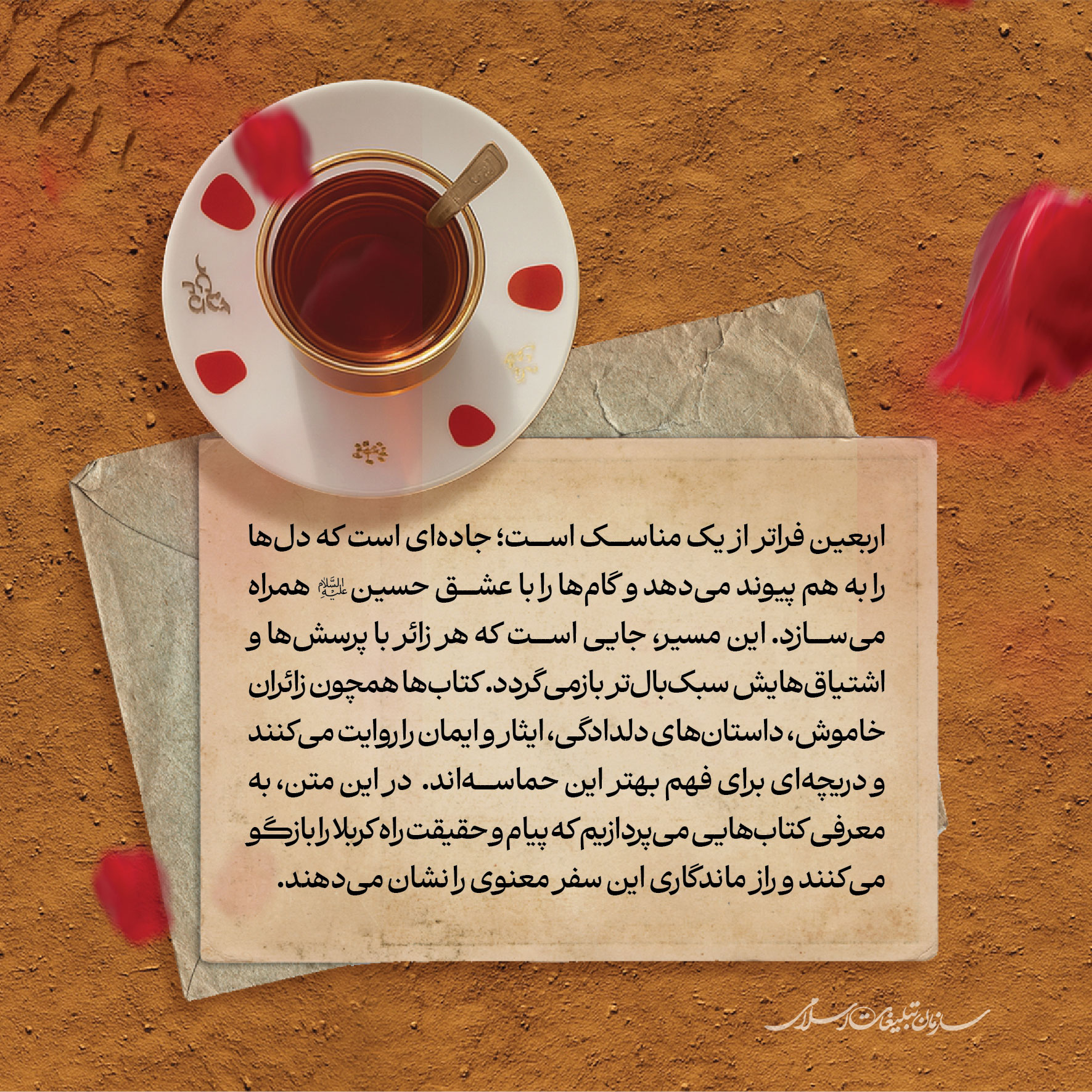 به گزارش روابط عمومی سازمان تبلیغات اسلامی، اربعین فراتر از یک مناسک است؛ جادهای است که دلها را به هم پیوند میدهد و گامها را با عشق حسین علیهالسلام همراه میسازد. این مسیر، جایی است که هر زائر با پرسشها و اشتیاقهایش سبکبالتر باز میگردد. کتابها همچون زائران خاموش، داستانهای دلدادگی، ایثار و ایمان را روایت میکنند و دریچهای برای فهم بهتر این حماسهاند. در این اطلاعنگاشت، به معرفی برخی از کتابهای ناشران خانواده سازمان تبلیغات اسلامی میپردازیم که پیام و حقیقت راه کربلا را بازگو میکنند و راز ماندگاری این سفر معنوی را نشان میدهند.