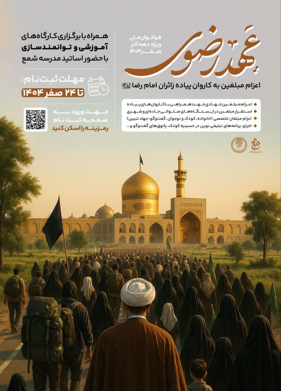 همزمان با نزدیک شدن دهه پایانی ماه صفر و پیشبینی حضور پرشور زائران در حرم مطهر امام رضا (ع)، اداره تبلیغات اسلامی خراسان رضوی با همکاری اداره کل امور مبلغین، قرارگاه تبلیغی «عهد رضوی» را با هدف سازماندهی و اعزام بیش از یکهزار مبلغ جهادی از سراسر کشور راهاندازی کرد.