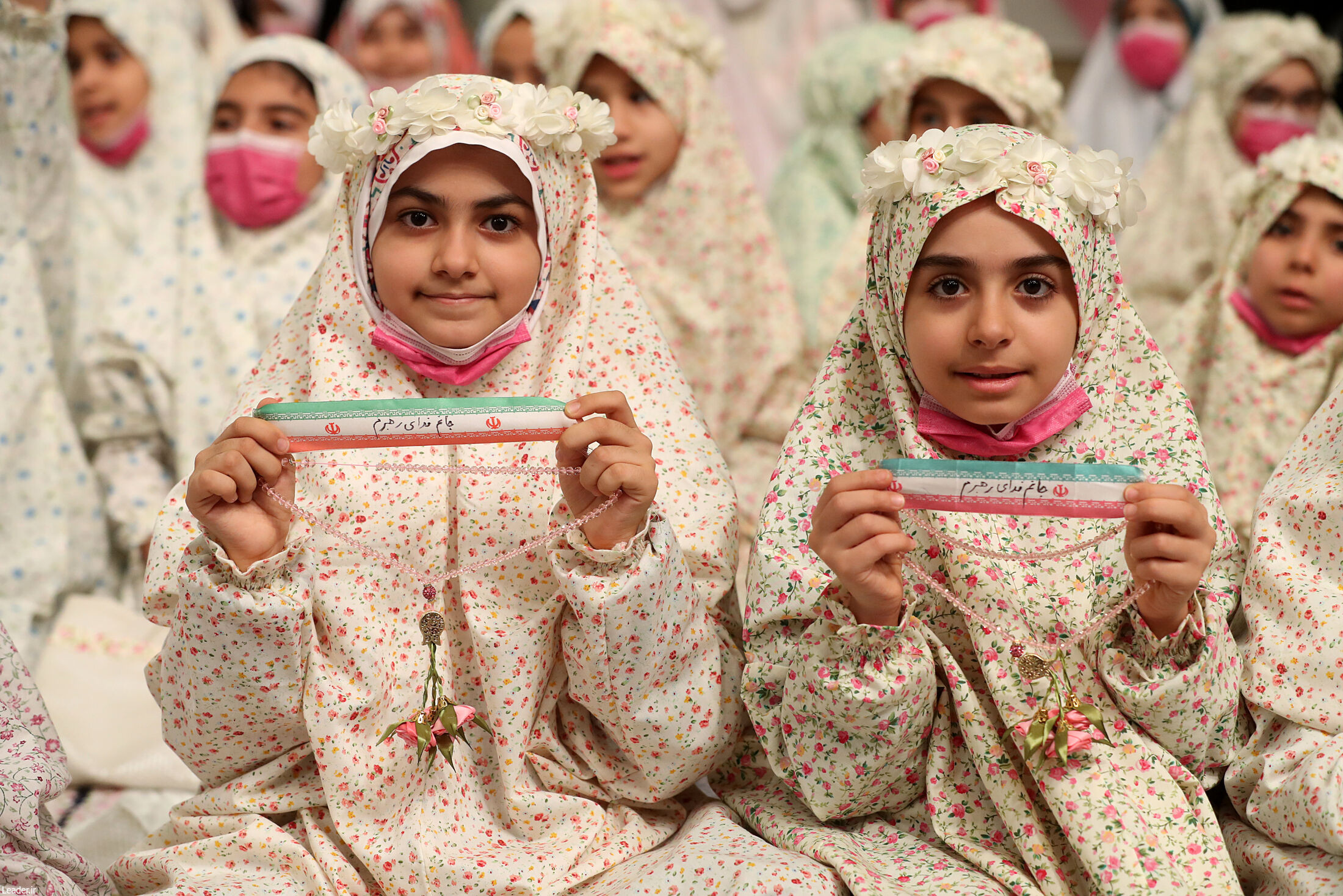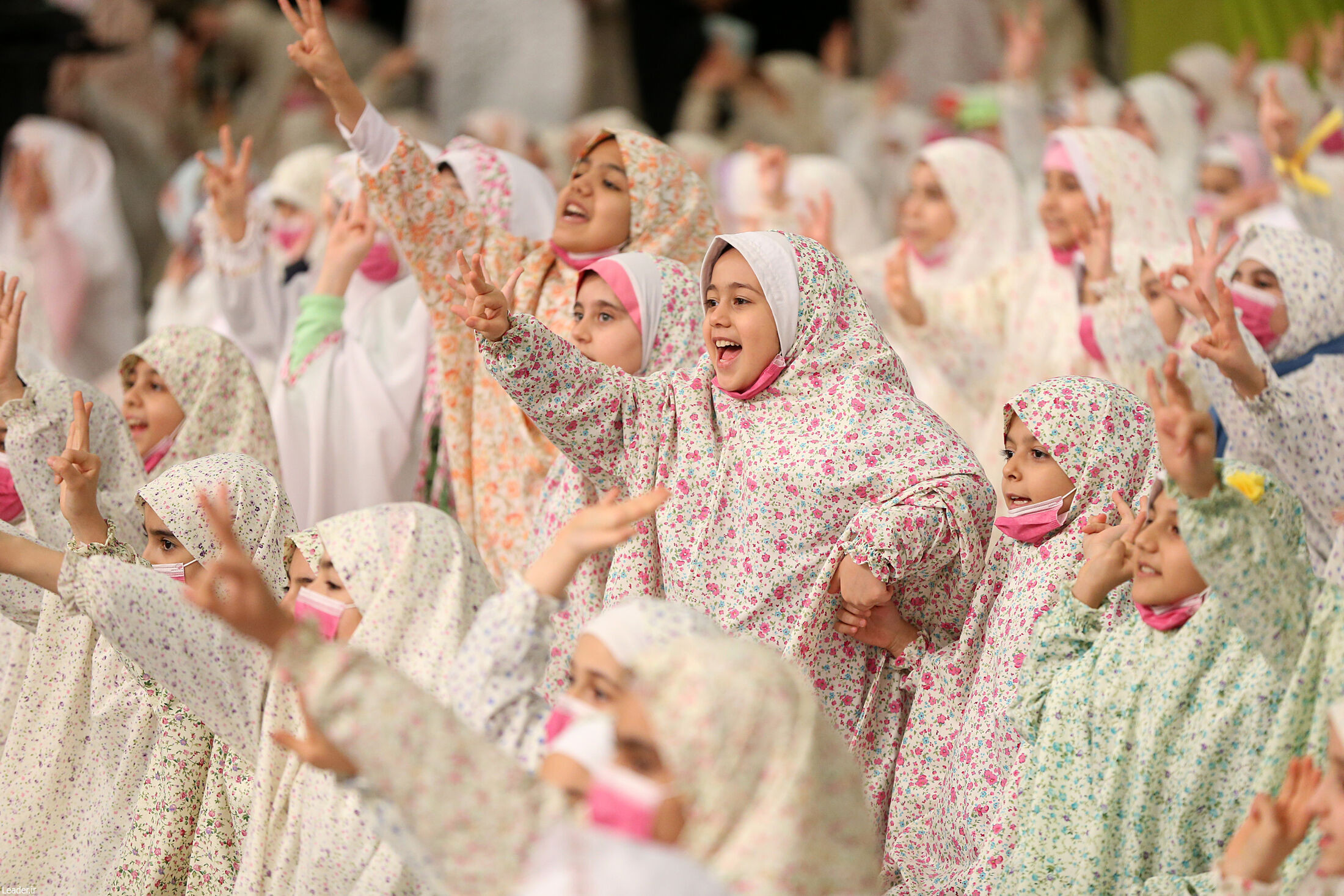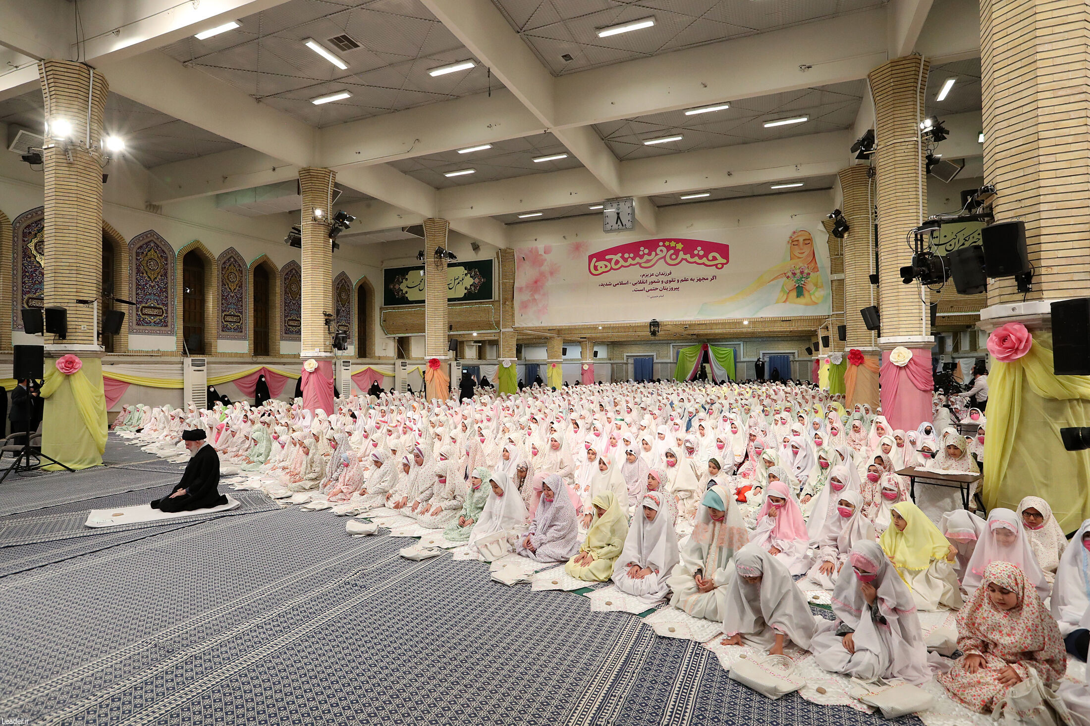在莱杰卜月吉祥的日子里,于信士们的统帅阿里(愿主福安之)诞辰之夜,为女学生们举办的宗教成年礼于今天(星期五)在伊玛目霍梅尼候赛因大厅举行。